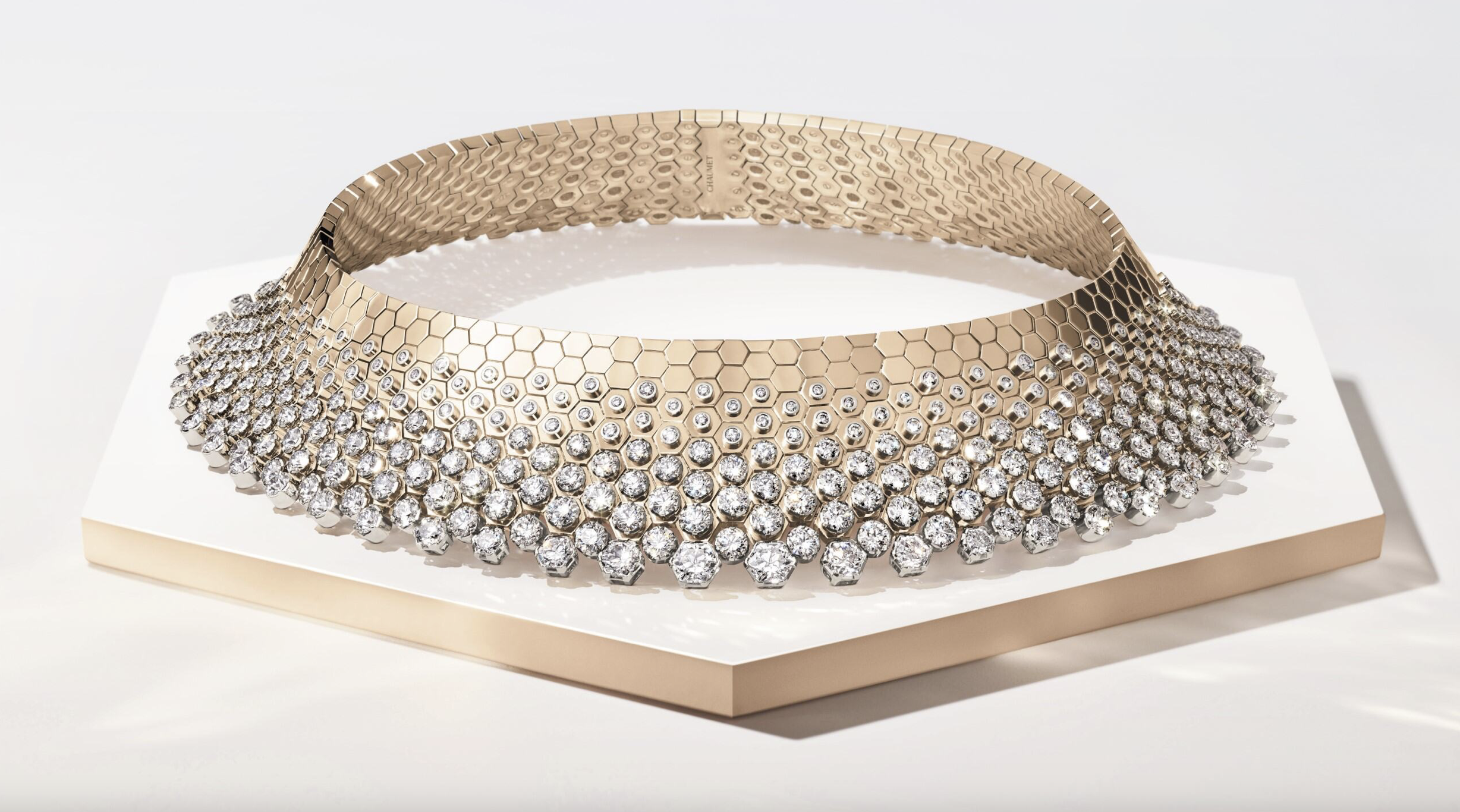 เมื่อสัญลักษณ์แห่งจักรวรรดิ ได้เจิดจรัสความรุ่งโรจน์ขึ้นอีกครั้ง กับเครื่องประดับคอลเลคชั่น Bee de CHAUMET 2025 ที่ได้รับแรงบันดาลใจในการสร้างสรรค์จากธรรมชาติ นำมาซึ่งความวิจิตรบรรจงในงานออกแบบโมทิฟแมลงผึ้ง และลายหกเหลี่ยมรวงผึ้ง บนโครงสร้างซึ่งออกแบบให้อิงแอบแนบผิว อย่างเหมาะเจาะของตัวเรือนทองคำอันล้ำค่า