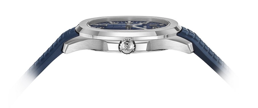 ตัวเรือนไวท์โกลด์ 18 เค ขนาด 40.8 มม. หนา 10.2 มม. (วัดจากกระจกหน้าปัดแซฟไฟร์ถึงกระจกแซฟไฟร์บนฝาหลัง) กันน้ำได้ถึงระดับความลึก 120 เมตร สวมคู่มากับสายสีน้ำเงินเข้ม ‘ไนท์บลู’ วัสดุคอมโพสิต ผิวลายตารางหมากรุก พร้อมตัวล็อคแบบบานพับวัสดุไวท์โกลด์ 18 เค