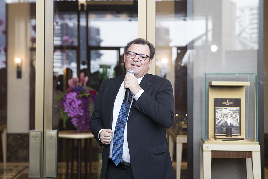 MR. THIERRY STERN ประธานบริษัท PATEK PHILIPPE ซึ่งบินตรงมาจากเจนีวา เพื่อร่วมพิธีเปิดอย่างเป็นทางการของบูติคแห่งนี้โดยเฉพาะ กล่าวเสริมว่า “ประเทศไทยเป็นตลาดที่สำคัญของ PATEK PHILIPPE เราและ PMT The Hour Glass ตัวแทนจำหน่ายที่เราไว้วางใจและร่วมงานกันมาอย่างยาวนาน มีความภูมิใจที่ได้สร้างบ้านหลังใหม่ของ PATEK PHILIPPE ในประเทศไทย และหวังเป็นอย่างยิ่งว่า นอกจากที่ลูกค้าจะสัมผัสได้ถึงทักษะเฉพาะตัวของช่างฝีมือของ PATEK PHILIPPE แล้ว ยังจะสัมผัสได้ถึงความปรารถนา ที่จะสืบสานตำนานแห่งความยอดเยี่ยมของ PATEK PHILIPPE ที่สืบทอดจากรุ่นสู่รุ่น เพื่อคงเจตนารมณ์ในการรักษาความเป็นเลิศของเราไว้”