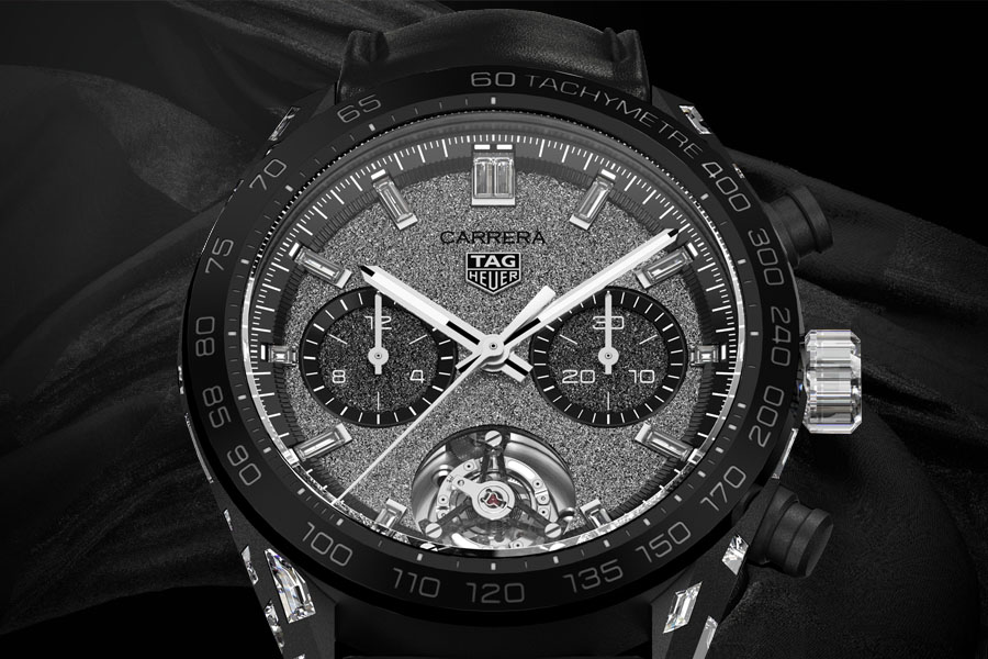 ปิดท้ายด้วย TAG Heuer Carrera Plasma เรือนเวลาสุดหรูที่ผลิตจากเพชรสังเคราะห์หรือแล็บ-โกร์นไดมอนด์ (Lab-grown Diamonds) ทำงานด้วยกลไกคาลิเบอร์ Heuer 02 Tourbillon Nanograph พร้อมพลังสำรองลานนาน 65 ชั่วโมง โดยเพชรนี้ถูกรังสรรค์ด้วยเทคโนโลยีซีวีดี (Chemical vapour deposition - CVD) เพื่อให้สามารถสร้างรูปทรงและเท็กซ์เจอร์ที่โดดเด่น เป็นเอกลักษณ์ซึ่งจะสอดแทรกอยู่บนขอบเบเซิล มาร์กเกอร์ และหน้าปัด โดยมีไฮไลท์สำคัญคือหน้าปัดที่ประดับด้วยเพชรโพลีคริสตัลไลน์ (Polycrystalline) อนุภาคเพชรที่มารวมกันเป็นพื้นหน้าปัด