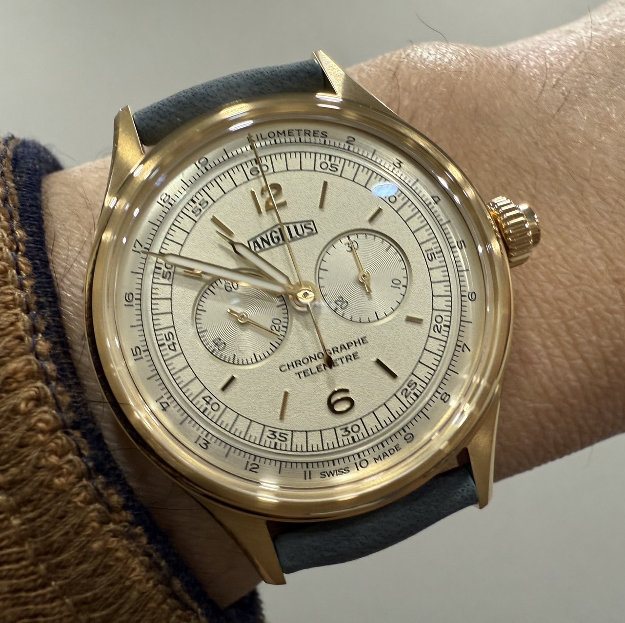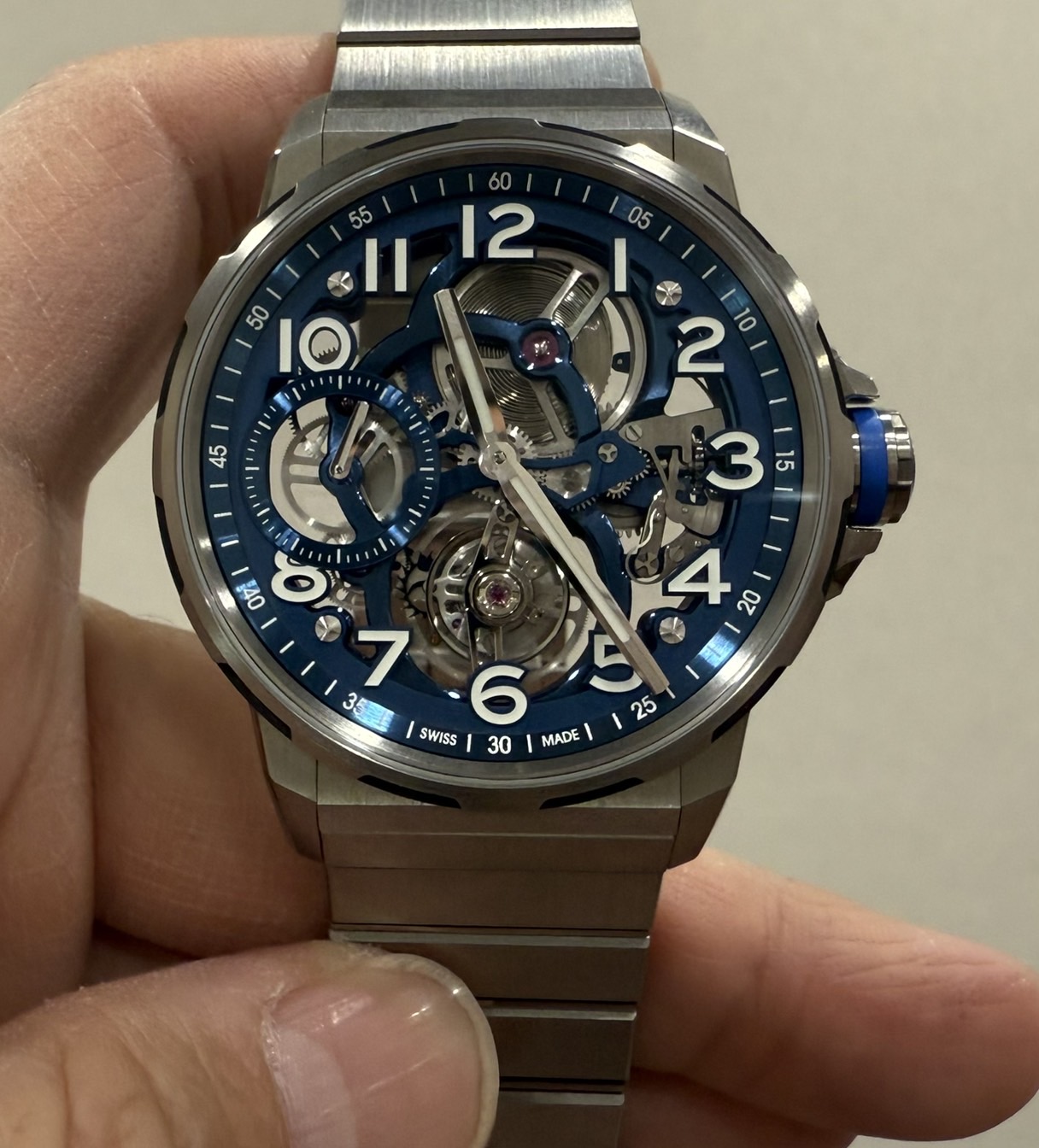 กับ ANGELUS ที่นำเสนอนาฬิการุ่น Flying Tourbillon Titanium Blue ใหม่ที่มาพร้อมหน้าปัดโทนสีน้ำเงิน กับสไตล์ของหน้าปัดสเกเลตันตูร์บิยอง พร้อมตัวเรือนและสายที่ผลิตจากไทเทเนี่ยม นอกจากนี้ก็ยังมีนาฬิการุ่น Chronographe Télémètre Steel Rose แบบตัวเรือนสตีลกับหน้าปัดสีแซลมอน และแบบตัวเรือนเยลโลว์โกลด์กับหน้าปัดสีเงิน โดยทั้งสองรุ่นเป็นการนำเสนอสีสันหน้าปัดเพิ่มเติมจากเดิม