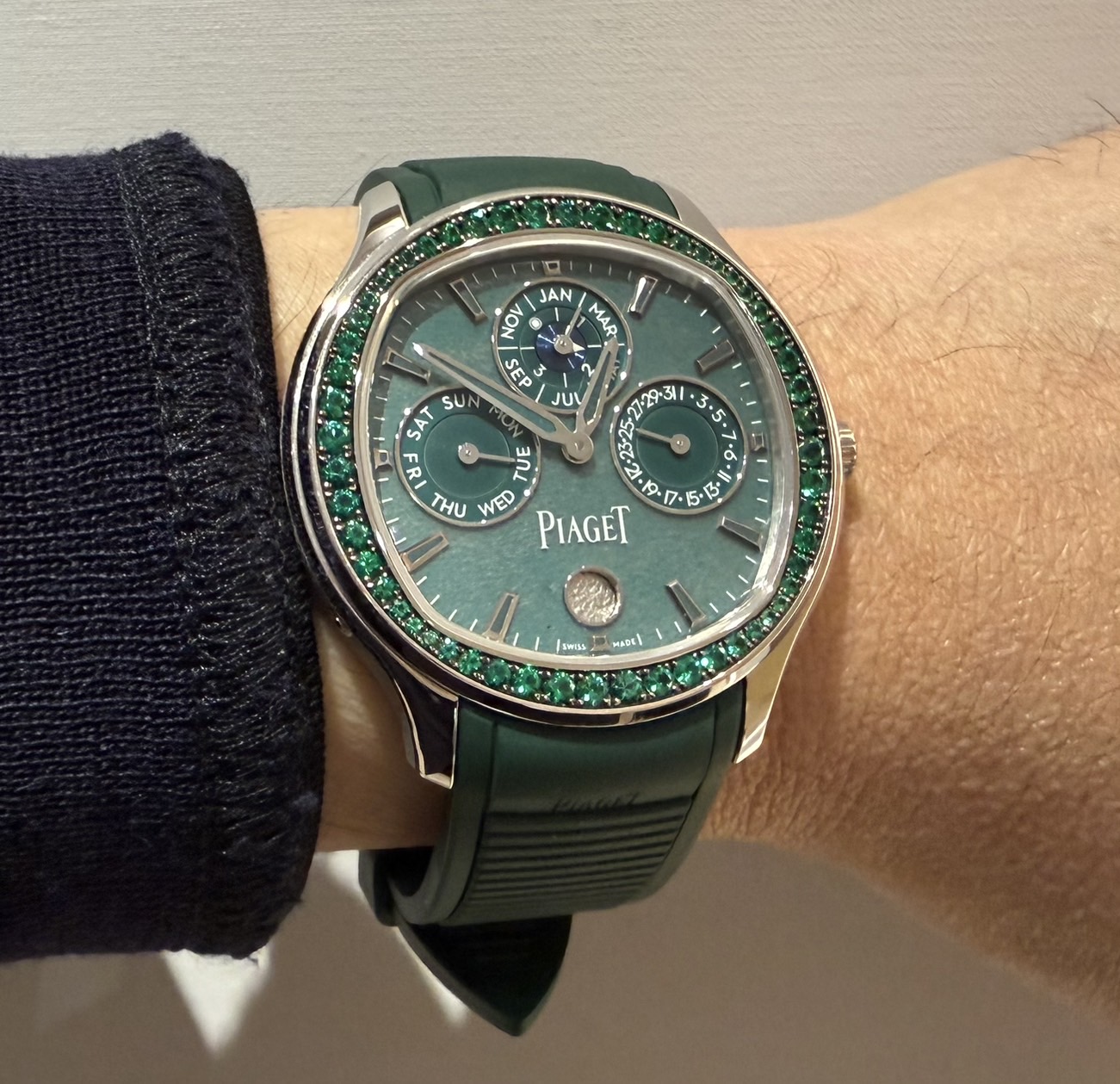 ส่วน PIAGET นำเสนอนาฬิกาในคอลเลคชั่นใหม่ล่าสุด Sixtie ในแบบเจเวลรี่ว็อช พร้อมกันกับนาฬิการุ่น Polo 79 ใหม่ในวัสดุไวท์โกลด์อันโดดเด่น จากความสำเร็จของนาฬิการุ่น Polo 79 ในวัสดุเยลโลว์โกลด์ที่ประสบความสำเร็จมาแล้วก่อนหน้า รวมทั้ง Polo Perpetual Calendar Obsidian ในโทนสีน้ำเงิน และโทนสีเขียวพร้อมการประดับด้วย เอเมอรัลทรงบาเก็ตต์รอบขอบหน้าปัด ที่ผลิตในแบบลิมิเต็ดเอดิชั่น