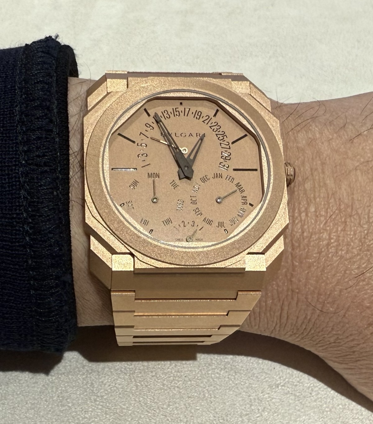 นอกจากนี้ยังมี BVLGARI ที่นำเสนอ New Serpenti ที่พัฒนาจากรุ่นเดิมสู่รูปแบบ ที่ทันสมัยขึ้นสำหรับยุคปัจจุบัน ในขณะที่ Serpenti เดิมก็มีการปรับปรุงโดยใช้กลไกอัตโนมัติ รวมทั้ง Octo Finissimo ใหม่แบบโรสโกลด์ที่เป็นการต่อยอด จากแบบไทเทเนี่ยมยอดนิยมรุ่นเดิม และ Octo Finissimo Marble Tourbillon ที่เพิ่มความหรูหราด้วยหน้าปัด ที่ผลิตจากหินอ่อนผนวกเข้ากับชุดกลไกแบบตูร์บิยอง