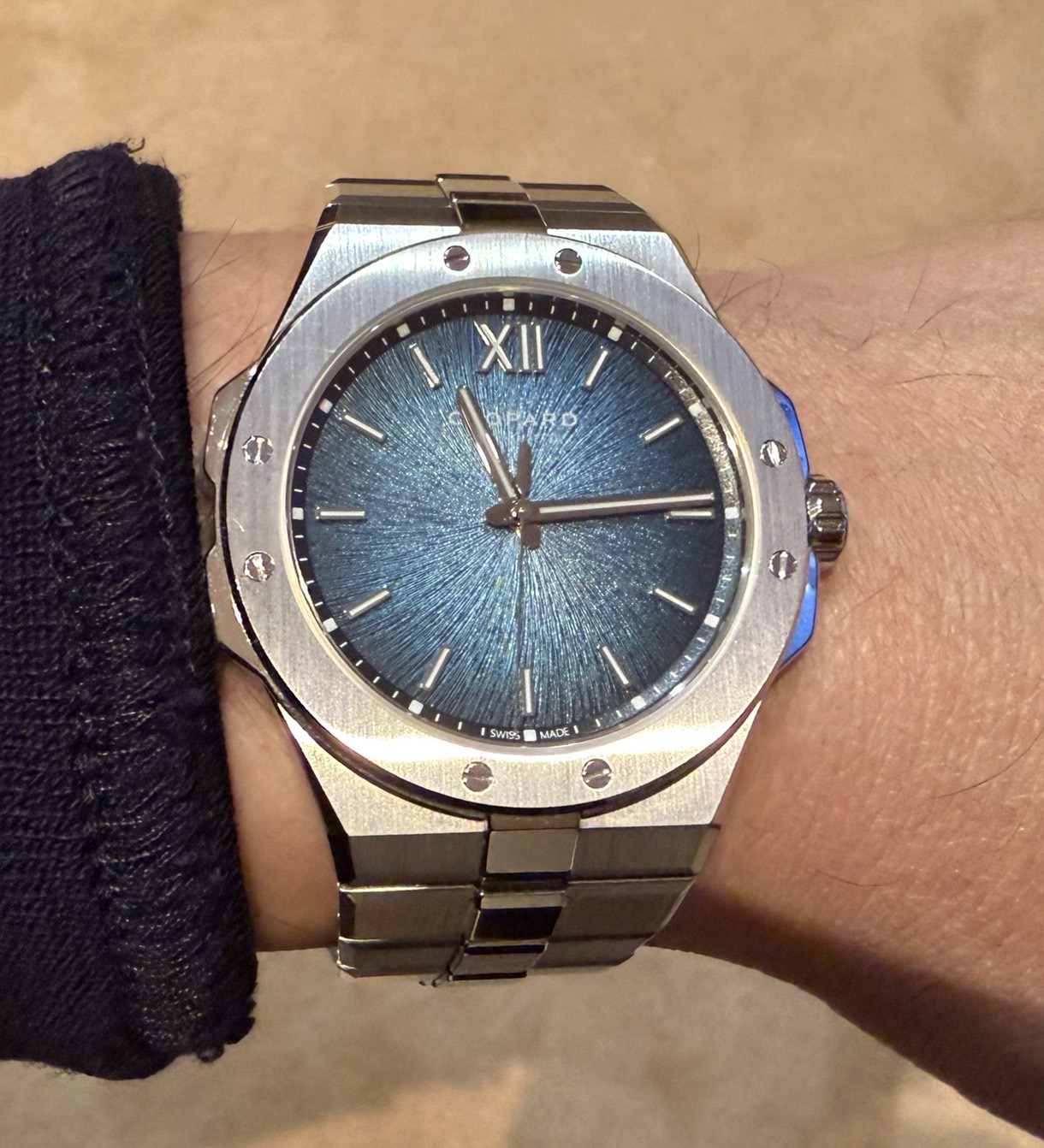 กับ CHOPARD นำเสนอ L.U.C Quattro – Mark IV ที่โดดเด่นด้วยสปริงบาเรลที่มีความยาวถึง 1.8 เมตรเพื่อมอบพลังสำรองลานที่ยาวนานและมีความเสถียรมากยิ่งขึ้น ต่อมาคือ Alpine Eagle 41XS CS Platinum อันโดดเด่นและหรูหราที่มาพร้อมหน้าปัดสีน้ำเงิน ในเท็กซ์เจอร์โทนสีน้ำเงิน “เชดออฟไอซ์” และ Happy Sport ใหม่ในแบบที่หรูหรายิ่งขึ้นจากการประดับเพชรรอบขอบหน้าปัด และหน้าปัดที่มีสีสันที่แตกต่างยิ่งขึ้น