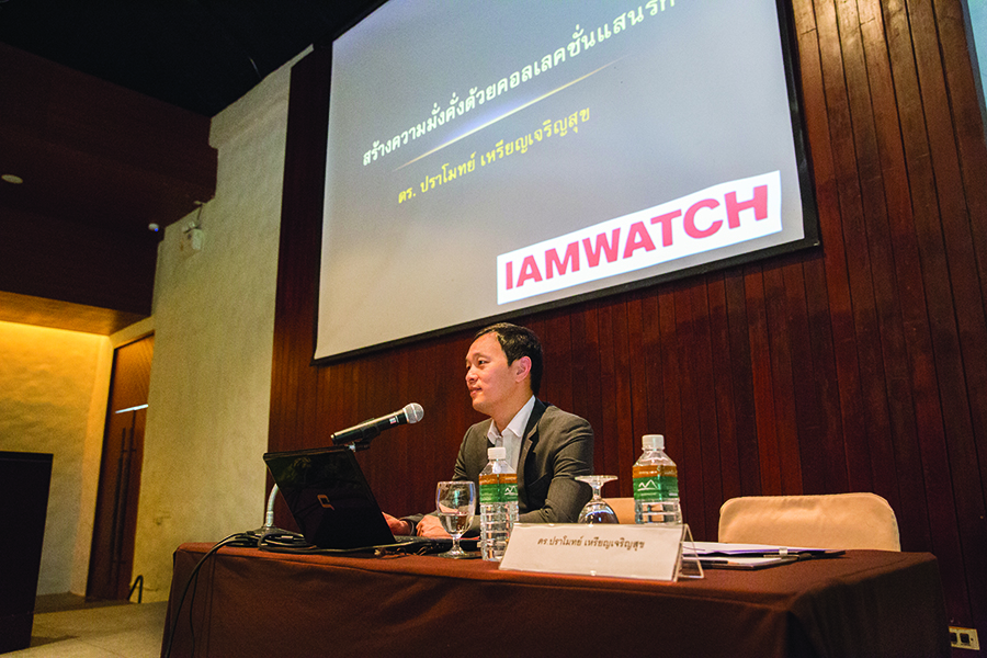 (28 กุมภาพันธ์ 2558) บริษัทหลักทรัพย์ ไทยพาณิชย์ จำกัด และสถาบันพัฒนาผู้ประกอบการเชิงสร้างสรรค์ (CEDI) มหาวิทยาลัยกรุงเทพ ร่วมกันจัดทำโครงการ SCBS Infinite Wealth Program (โครงการสร้างความมั่งคั่งอย่างยั่งยืนกับ SCBS) ซึ่งมีระยะการอบรมตั้งแต่เดือนมกราคม – พฤษภาคม 2558 ด้วยวัตถุประสงค์เพื่อผลักดันให้เกิดสังคมแห่งการเรียนรู้ นำไปสู่ความมั่งคั่ง และมุ่งมั่นพัฒนากลุ่มนักลงทุนรุ่นใหม่ เพื่อส่งเสริมการสร้างนักลงทุนที่มีคุณภาพ ซึ่งหนึ่งในหัวข้อการบรรยายของโครงการก็คือ “เพิ่มความมั่งคั่ง 360 องศา” โดยมี ดร. ปราโมทย์ เหรียญเจริญสุข แห่งนิตยสาร IAMWATCH ร่วมเป็นผู้บรรยายและให้ทัศนะในแง่ของนาฬิกา ให้กับผู้เข้าอบรมได้รับฟัง ณ คีรีมายา กอล์ฟ รีสอร์ทแอนด์สปา เขาใหญ่