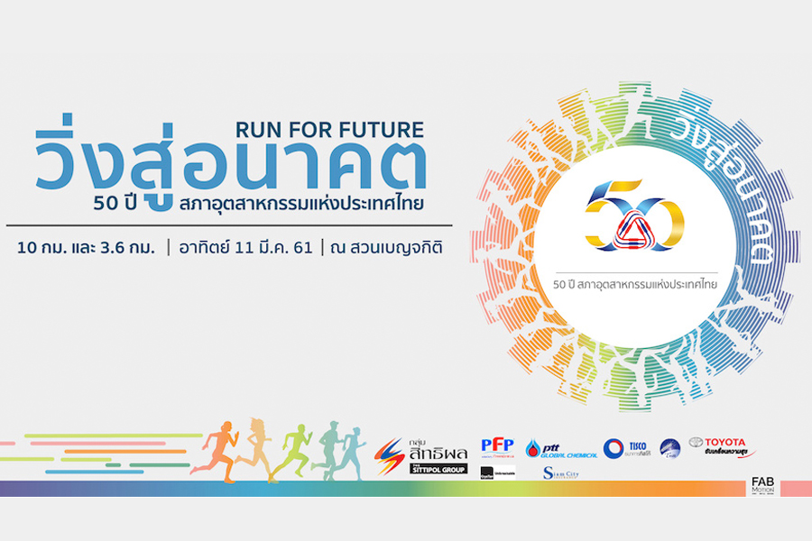 คุณเจน นำชัยศิริ ประธาน สภาอุตสาหกรรมแห่งประเทศไทย หรือ ส.อ.ท. เป็นประธานในงานแถลงข่าวการจัดงานวิ่งการกุศล "50 ปี ส.อ.ท. วิ่งสู่อนาคต" ซึ่งจะจัดขึ้นในวันอาทิตย์ที่ 11 มีนาคม 2561 ระยะ 10 และ 3.6 กม. ณ สวนเบญจกิติ โดยมี คุณพิมพ์ใจ ลี้อิสระนุกูล ประธานกรรมการ กลุ่มสิทธิผล ผู้ให้การสนับสนุนหลัก และ คุณวราวรรณ ทิพพาวนิช ผู้ช่วยกรรมการผู้จัดการใหญ่สายงานกิจการองค์กร บมจ. พีทีที โกบอล เคมิคอล ผู้ให้การสนับสนุนเสื้อที่จะใช้ในกิจกรรม ซึ่งทำมาจากขวดพลาสติก PET ที่เก็บจากขยะในท้องทะเลไทย ให้เกียรติร่วมงานแถลงข่าว รายได้จากการสมัครมอบสนับสนุนโครงการเปลี่ยนประเทศไทยด้วยการศึกษา