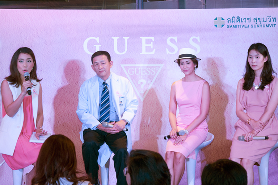 เซ็นทรัลมาร์เก็ตติ้งกรุ๊ป ผู้แทนจำหน่ายนาฬิกา Guess โดยคุณเยาวลักษณ์ กิจทวีสินพูน ผู้ช่วยผู้อำนวยการฝ่ายการตลาดแผนกสินค้าพิเศษ เปิดตัวแคมเปญ Guess Watches for the Breast Cancer ที่ได้ร่วมกับโรงพยาบาลสมิติเวช สุขุมวิท รณรงค์ให้ผู้หญิงทุกคนเข้าใจถึงความเสี่ยงและแนะนำวิธีการป้องกันโรคมะเร็งเต้านม พร้อมส่งเสริมผู้หญิงไทยให้รักสุขภาพ เมื่อวันที่ 7 สิงหาคม 2013 ณ ฟู้ดลอฟท์ ชั้น 7 เซนเวิลด์ ศูนย์การค้าเซ็นทรัลเวิลด์ โดยมี คุณจินตนา บุญรัตน์ รองกรรมการผู้จัดการใหญ่พัฒนาระบบ เซ็นทรัลมาร์เก็ตติ้งกรุ๊ป คุณรุ่งฉัตร บุญรัตน์ กรรมการและรองผู้จัดการใหญ่สายงานการขายและการตลาด มาลี สามพราน และ คุณวรัทยา นิลคูหา นักแสดงสาว มาร่วมพูดคุยกับ รศ. นพ. วิชัย วาสนสิริ ศัลยแพทย์คลินิกเต้านม โรงพยาบาลสมิติเวช สุขุมวิท พร้อมเผยโฉมนาฬิกา Guess รุ่นล่าสุด ท่ามกลางผู้เข้าร่วมงานมากมาย และภายในงานยังมีทีมพยาบาลผู้เชี่ยวชาญมาสอนวิธีการตรวจเต้านมเบื้องต้นด้วยตนเองให้กับผู้มาร่วมงานอีกด้วย