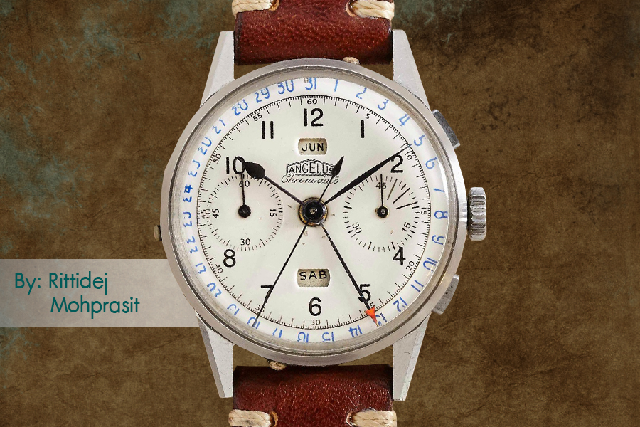 แบรนด์ Angelus ถือกำเนิดขึ้นในปี 1891 โดยพี่น้อง Stoltz แห่งเมืองเลอโลค จึงถือว่าอยู่ร่วมเมืองกับแบรนด์นาฬิกาขึ้นชื่ออย่าง Zenith, Tissot, Vulcain และ Universal (ที่ต่อมาย้ายไปอยู่เจนีวา) โดยเน้นผลิตนาฬิกาพกที่มีความซับซ้อนสูง แต่ความยิ่งใหญ่ของ Angelus จริงๆ เริ่มในช่วงปี 1920’s-30’s จากการพัฒนากลไกนาฬิกาข้อมือที่มีฟังก์ชั่นจับเวลาแบบปุ่มเดียว หรือที่เรียกกันว่าโมโนพุชเชอร์ รวมไปถึงสร้างประวัติศาสตร์ด้วยกลไกอินเฮาส์คาลิเบอร์ 240 (ที่พัฒนาร่วมกันกับ Zodiac) ซึ่งเป็นกลไกที่สามารถสำรองพลังงานได้นานถึง 8 วัน และมีขนาดเล็กที่สุดในโลก ทั้งยังมีความแม่นยำสูงจนถูกนำมาใช้ในนาฬิกา Panerai บางรุ่นอีกด้วย