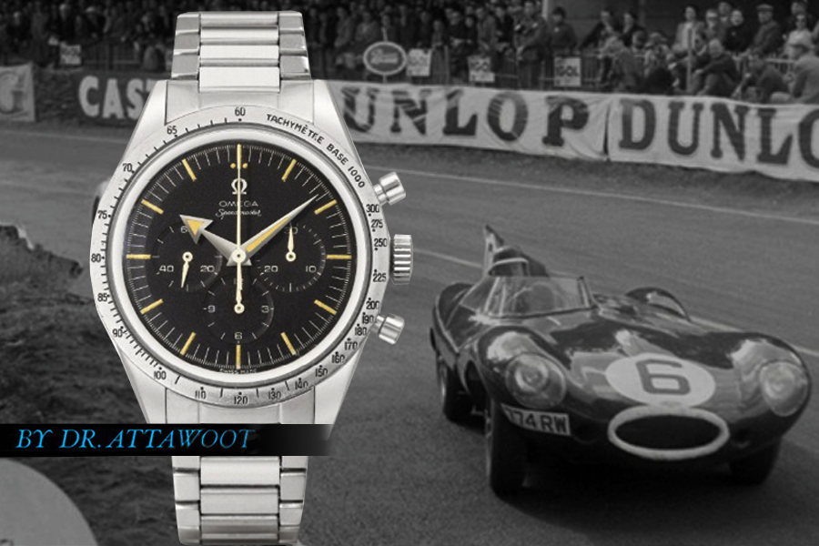 นอกจากนี้ ยังมี Omega รุ่น Speedmaster ที่ก็ฝากชื่อให้จารึกอยู่ในหน้าประวัติศาสตร์วงการมอเตอร์สปอร์ตเช่นกัน แม้นาฬิการุ่น Speedmaster นี้ อาจเป็นที่รู้จักกันดีจากความทนทาน ความแม่นยำ และความเที่ยงตรง จนถูกเลือกโดยองค์การนาซ่า เพื่อใช้สำหรับโครงการอพอลโลในภารกิจเยือนดวงจันทร์ และสร้างชื่อเสียงให้กับนาฬิการุ่นนี้และแบรนด์อย่างมหาศาล ซึ่งอันที่จริงแล้วจุดกำเนิดของ Speedmaster กลับอยู่ในแวดวงมอเตอร์สปอร์ตนี่เอง โดยในปี 1957 นาฬิการุ่น Speedmaster รุ่นแรกใน Ref. CK2915 หรือที่เรียกกันว่า Broad Arrow ถูกวางตำแหน่งให้เป็นนาฬิกาสปอร์ตกลไกจับเวลา ที่ได้รับแรงบันดาลใจจากการแข่งขันรถยนต์ โดยชื่อ Speedmaster จะสื่อถึงกรอบวัดความเร็วของหน้าปัดรถแข่ง โดยนาฬิการุ่นนี้ ถือเป็นพระเอกที่เข้ามาเติมเต็มให้แบรนด์มีความสมบูรณ์แบบมากยิ่งขึ้น โดยมีความสำคัญถึงระดับการเป็นผู้จับเวลาอย่างเป็นทางการ สำหรับการแข่งขันกีฬาโอลิมปิค จากอดีตจวบจนถึงทุกวันนี้