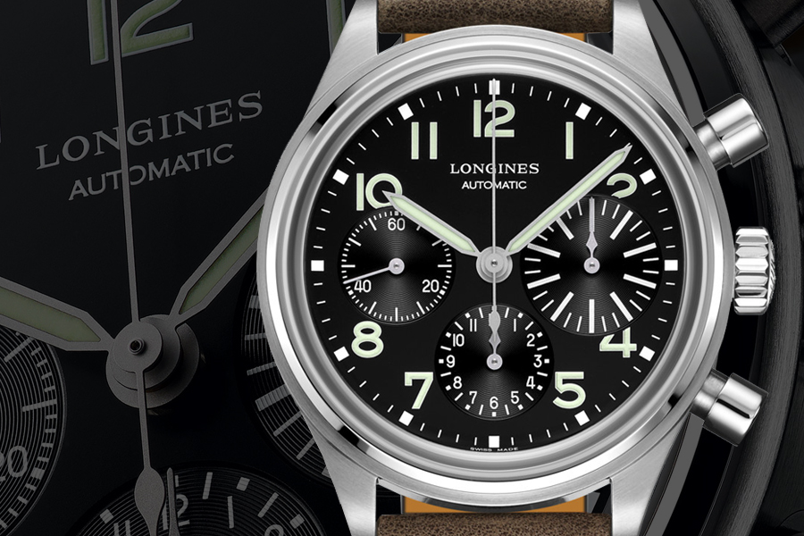 ตัวเรือนสตีลขนาด 41 มิลลิเมตร กลไกคาลิเบอร์ L688 โครโนกราฟคอลัมน์วีลของ Longines เม็ดมะยมแบบขันเกลียวแน่น หน้าปัดสีดำแบบกึ่งกลอสซี่ มาร์กเกอร์แบบตัวเลขอาร์บิคและเข็มบอกเวลาเคลือบสารเรืองแสงซุปเปอร์ลูมิโนว่า หน้าปัดย่อยจับเวลาวินาทีที่ตำแหน่ง 9 นาฬิกา และหน้าปัดย่อยจับเวลา 12 ชั่วโมงที่ตำแหน่ง 6 นาฬิกา ส่วนหน้าปัดย่อยขนาดโอเวอร์ไซส์สำหรับจับเวลา 30 นาทีที่ตำแหน่ง 3 นาฬิกา กรุด้วยกระจกแซฟไฟร์ทรงโดมเคลือบสารป้องกันแสงสะท้อนและสายหนังสีน้ำตาลเน้นรอยเย็บและตะเข็บสไตล์นักบินที่เติมเต็มความวินเทจให้กับนาฬิกาเรือนนี้ได้อย่างเต็มร้อย
