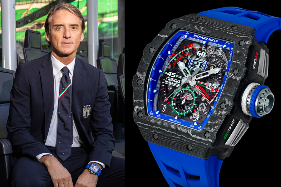 Roberto Mancini เป็นหนึ่งในผู้ใกล้ชิดกับ Mr. Richard Mille มาตั้งแต่ปี 2013 เขาเป็นผู้จัดการทีมฟุตบอลแห่งชาติอิตาลี และยังเป็นผู้อยู่เบื้องหลังความสำเร็จของทีมในหลายครั้ง และนั่นก็ทำให้นาฬิการุ่น RM11-04 นี้มีธีมสีสันของ Squadra Azzurra ซึ่งเป็นทีมฟุตบอลแห่งชาติของอิตาลี