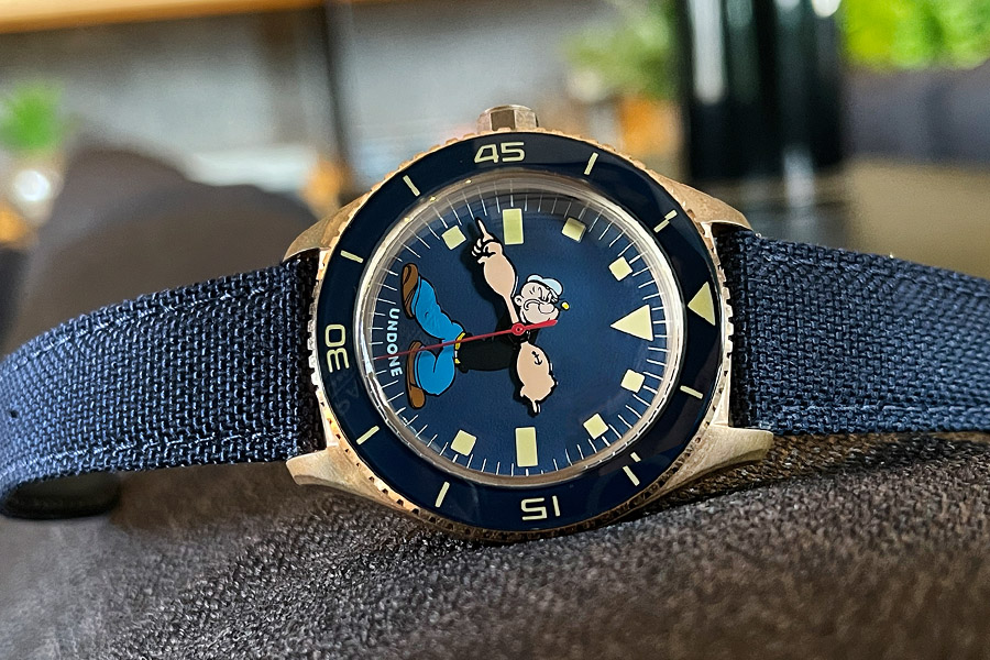 เพราะแค่เริ่มต้นจากเรื่องรูปลักษณ์แล้ว ความน่าสนใจตั้งแต่ครั้งแรกเห็น ก็เรียกคะแนนให้ได้พอสมควรอยู่แล้ว กับนาฬิกาที่เต็มไปด้วยกลิ่นอายของตัวการ์ตูนดัง Popeye ที่ผู้คนทั้งโลกรู้จักกันดี ในภาพของ Popeye ที่มีแขนทำหน้าที่เป็นเข็มนาฬิกา ทั้งเข็มสั้นแสดงชั่วโมงและเข็มยาวแสดงนาที ในอากัปกริยาของ Popeye ที่แข็งแรงหลังจากการกินผักขมเข้าไปแล้ว ซึ่งเห็นได้จากแขนล่ำปึ๊กของเขาในขณะนี้