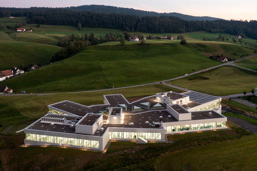 ซึ่งหนึ่งในจุดเด่นของ Manufacture des Saignoles ก็คือหน้าต่างบานใหญ่ที่ผลิตจากกระจกเซจกลาส (SageGlass®) ซึ่งเป็นกระจกปรับเปลี่ยนสีจากปฏิกิริยาไฟฟ้าเคมี (Electrochromic glass) ที่สามารถเปลี่ยนสีได้ตามแสงธรรมชาติ พร้อมยังช่วยประหยัดพลังงาน ที่นอกจากจะช่วยให้แสงส่องผ่านเข้ามาในแต่ละเวิร์คช็อปได้อย่างทั่วถึง โดยกระจกประเภทนี้ยังช่วยควบคุมอุณหภูมิได้ตลอดทั้งปี ทั้งยังมอบทัศนียภาพโดยรอบได้อย่างเต็มตา และสถาปัตยกรรมที่ใช้งานแสงธรรมชาติได้อย่างดีเยี่ยมแห่งนี้ ก็ได้รับการพัฒนาขึ้นร่วมกันกับMarilyne Andersen ศาสตราจารย์ด้านเทคนิคการก่อสร้างที่ยั่งยืน จากสถาบันเทคโนโลยีโลซานแห่งสมาพันธรัฐสวิส (Swiss Federal Institute of Technology Lausanne, EPFL) ผู้ความเชี่ยวชาญด้านการใช้แสงธรรมชาติเพื่อความเป็นอยู่ โดยนำมาใช้ในการพัฒนาพื้นที่การทำงานให้ตอบโจทย์งานแต่ละประเภทโดยเฉพาะ