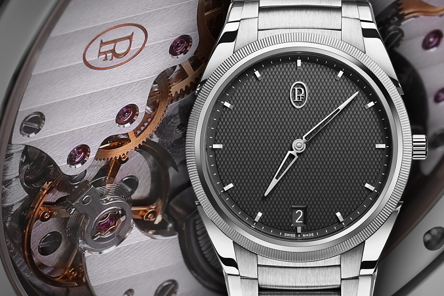 กับชิ้นส่วนของชุดกลไกทั้งหมดรวมกันที่ 160 ชิ้น ส่วนภายนอกตัวเรือน จะกรุด้วยกระจกแซฟไฟร์ที่มีการเคลือบสารป้องกันแสงสะท้อนอรูนิค (ARunic) เพื่อการอ่านค่าเวลาที่สมบูรณ์แบบที่สุด แสดงเวลาด้วยเข็มรูปทรงเดลต้า บนหน้าปัดที่ผ่านการตกแต่งลวดลาย “กิโยเช่ เกรนดอร์จ” สีเทา พร้อมมาร์กเกอร์ที่ผ่านการชุบโรเดียม ที่ให้ความเงางามในทุกมุมมองของหน้าปัด