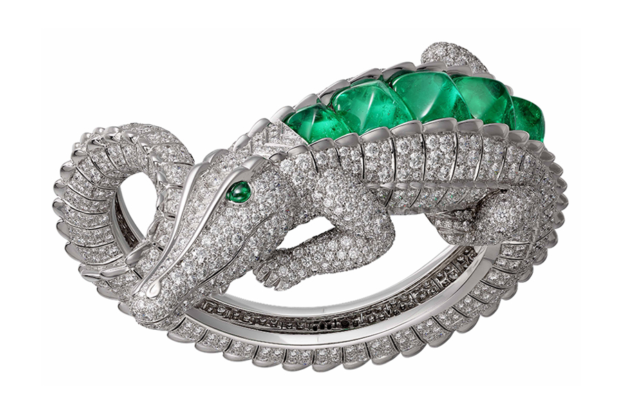 ในปี 1975 CARTIER รังสรรค์สร้อยคอทรงจระเข้เส้นงามเเห่งยุค เพื่อให้ María Félix นักเเสดงหญิงชาวเม็กซิโกสวมใส่โดยเฉพาะ โดยเครื่องประดับประวัติศาสตร์ชิ้นดังกล่าว ได้รับแรงบันดาลใจจากสัตว์เลี้ยงแสนรักของเธอ ประกอบขึ้นด้วยตัวเรือนทรงจระเข้สองตัวเชื่อมติดกัน ตัวหนึ่งประดับด้วยมรกต อีกตัวประดับด้วยเพชรสีเหลือง โดยช่างผู้สรรค์สร้างสร้อยคอชิ้นดังกล่าว ได้กลายมาเป็นผู้อยู่เบื้องหลังผลงานการออกแบบในครั้งใหม่นี้ด้วย อันประกอบไปด้วย สร้อยคอ สร้อยข้อมือ แหวน และต่างหู ประดับด้วยมรกตน้ำงามจากโคลอมเบีย เจียระไนแบบคาโบชง (Cabochon) 14 เม็ด น้ำหนักรวม 46.45 กะรัต อัญมณีล้ำค่าทั้งหมดที่ประกอบเป็นเครื่องประดับชิ้นนี้ งดงามไร้ที่ติไม่ต่างกับชิ้นต้นแบบ ไม่ว่าจะเป็นในเชิงของคุณภาพ สีสัน และรูปทรงของอัญมณี นอกจากนี้ยังเพิ่มความตระการตาด้วยการประดับประดาด้วยลูกปัดมรกตสีเขียวเข้มรายรอบอีกด้วย