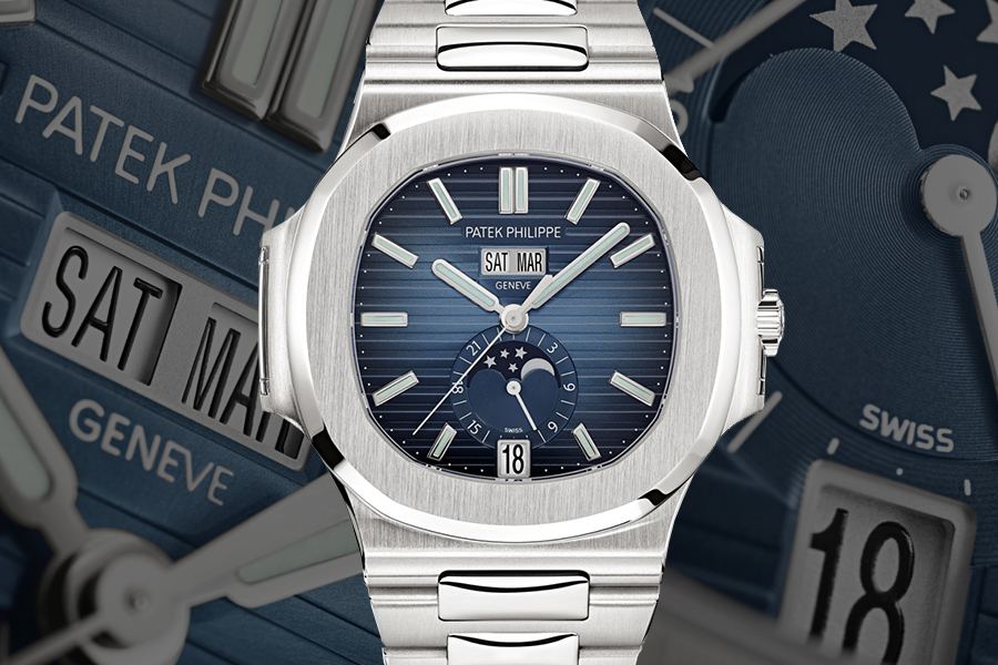 นาฬิการุ่น Nautilus ตัวเรือนสตีลขนาด 40.5 มิลลิเมตรนี้ โดดเด่นด้วยฟังก์ชั่นแอนนวลคาเลนดาร์ ที่นับเป็นหนึ่งกลไกซับซ้อนที่มักจะพบอยู่ในเฉพาะนาฬิการะดับสูง โดยเมื่อมองจากทางด้านหน้า นอกจากหน้าปัดเล็กที่จัดวางแบบสมมาตรแล้ว ยังโดดเด่นด้วยฟังก์ชั่นมูนเฟสที่เป็นอีกหนึ่งในความสำคัญของนาฬิกาฟังก์ชั่นแอนนวลคาเลนดาร์ แต่สิ่งสำคัญที่สุดในยุคนี้ คงหนีไม่พ้นหน้าปัดสีน้ำเงินยอดนิยมที่นอกจากจะบ่งบอกความเป็นนาฬิกาในตระกูล Nautilus ได้เป็นอย่างดีที่สุดตามแบบฉบับนาฬิกาเรือนแรกที่นำเสนอในปี 1976 แล้ว ยังเพิ่มความน่าหลงใหลของสีน้ำเงินเหลือบดำ ที่ทำให้หน้าปัดของนาฬิกาเรือนนี้ ดูมีมิติและสะท้อนกับแสงในมุมมองต่างๆ พร้อมกันกับมาร์กเกอร์ทองคำ ได้ดีเพิ่มมากขึ้นอีกด้วย