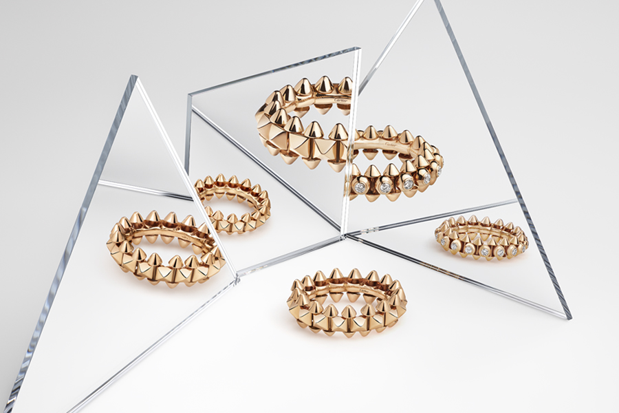 Clash de CARTIER เครื่องประดับจิตอิสระที่ส่งต่อมรดกทางสุนทรียภาพ ที่สืบทอดทักษะอันล้ำเลิศในการดีไซน์สัดส่วนที่ลงตัวไว้โดยสมบูรณ์ ด้วยรูปทรงวงกลม จัตุรัส และความนูน ที่สานต่อความโปรดปรานที่เมซงมีต่อรูปทรงเรขาคณิตมาโดยตลอด นับตั้งแต่ช่วงทศวรรษ 1930s เป็นต้นมา โดยยังคงองค์ประกอบสำคัญไว้อย่างครบถ้วน อย่างเช่นที่ชิ้นส่วนแต่ละชิ้นจะถูกนำมาประกอบเข้าด้วยกันก่อนแล้วจึงทำการขัดเงา ซึ่งแต่ละขั้นตอนจะต้องใช้เทคนิคและเครื่องมือที่เหมาะสมเท่านั้น