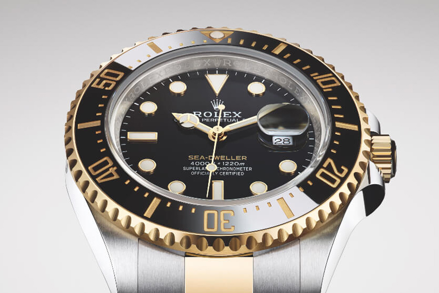 สำหรับนาฬิกา ROLEX รุ่นโปรเฟสชันนัล หรือรุ่นสปอร์ทที่คุ้นตากันดี มักจะนึกถึงรุ่นเรือนสตีลล้วนกันมากที่สุด ซึ่งนอกจากวัสดุสตีลแล้ว ยังมีวัสดุแบบทองคำทั้งไวท์โกลด์และเยลโลว์โกลด์ รวมไปถึงเอเวอร์โรสโกลด์และแพลทตินัมให้เลือกอีกด้วย พร้อมกับอีกหนึ่งทางเลือก ที่เป็นรูปแบบคู่กับแบรนด์ ROLEX มาเป็นระยะเวลานานแล้ว นั่นก็คือแบบทูโทน ที่ในปีนี้ถือเป็นครั้งแรกของการนำเสนอนาฬิการุ่น Sea-Dweller ในแบบทูโทน จากที่เคยมีมาแต่เฉพาะในรุ่น Cosmograph Daytona, Submariner, GMT Master II และ Yacht-Master เท่านั้น