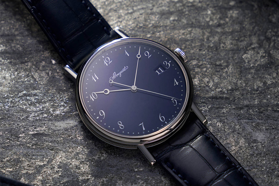 โดดเด่นด้วยเข็มนาฬิกาทรง BREGUET อันเป็นเอกลักษณ์ ที่แบรนด์นาฬิกาทั่วโลกต่างยอมรับพร้อมทั้งนำไปใช้ ผนวกความพิเศษของหน้าปัดแบบกรองฟูว์อีนาเมลสีน้ำเงิน ที่เข้าคู่กันได้ดีกับสายหนังจระเข้สีน้ำเงินเข้ม กับตัวเรือนไวท์โกลด์ ที่ยังคงความงดงามของขอบด้านข้างตัวเรือนแบบฟลุท ที่เป็นอีกหนึ่งในเอกลักษณ์สำคัญของนาฬิกาจาก BREGUET ตั้งแต่อดีต