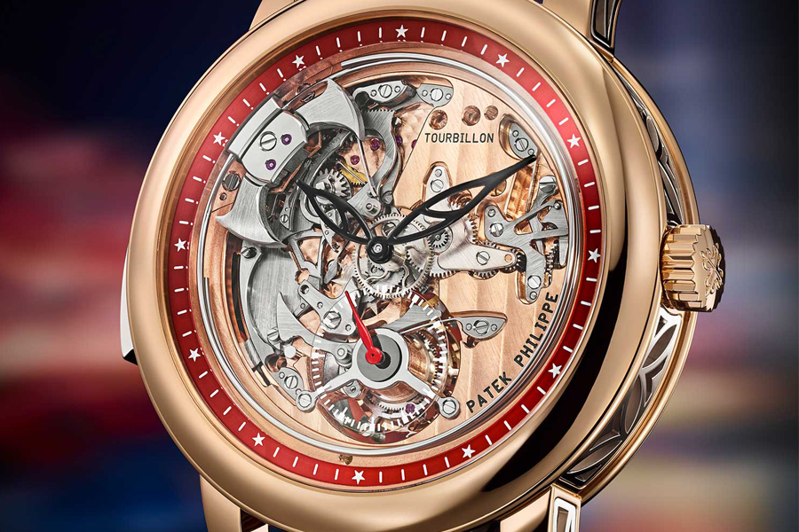 ตัวเรือนผลิตจากโรสโกลด์ พร้อมขอบด้านข้างตัวเรือน และสลักของปุ่มมินิทรีพีทเตอร์ผลิตจากไวท์โกลด์ที่ผ่านการแกะสลักอย่างงดงาม เพื่อให้เข้ากับด้านข้างของตัวเรือนที่ผนวกขาตัวเรือนแบบโปร่งเข้าด้วยกัน ตัดกันกับขอบแทร็คมินิทภายในหน้าปัดสีแดงแทร็คสีขาว เพื่อแสดงให้เห็นถึงสีสันความเป็นโลกของเอเชียตะวันออกเฉียงใต้ ซึ่งเป็นหนึ่งในปรัชญาการสร้างสรรค์ของ PATEK PHILIPPE ที่น้อมนำแนวคิดและจิตวิญญาณของผู้ที่ชื่นชอบแบรนด์มาปรับใช้ในนาฬิกาของตน