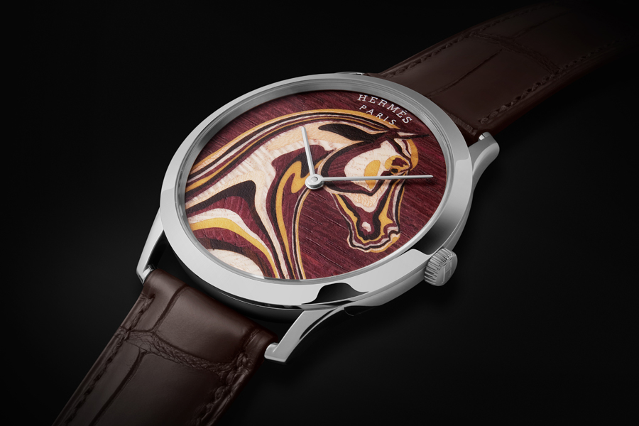 SLIM D’HERMÈS Pégase Paysage งานตัดต่อลายไม้บนหน้าปัดนาฬิกา