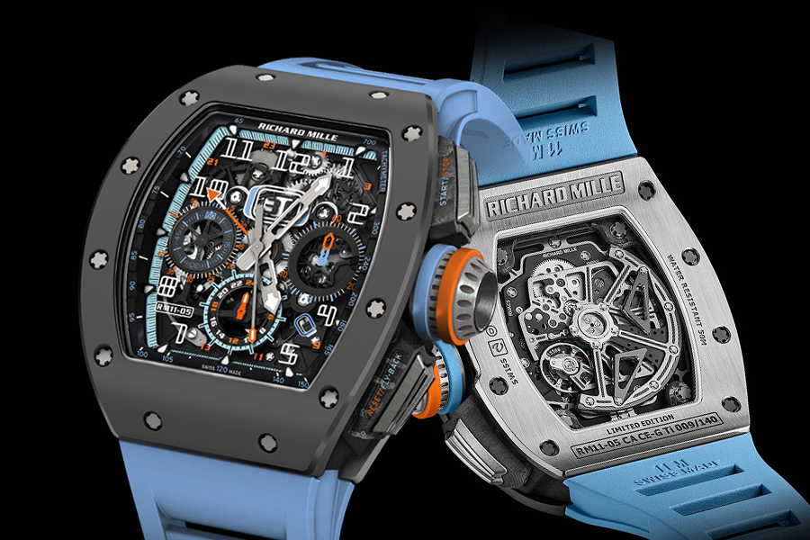 ตัวเรือนคาร์บอนทีพีที® ผนวกกับไททาเนียมเกรด 5 และขอบหน้าปัดเซอร์เม็ทสีเทา ที่สามารถช่วยลดน้ำหนักของ RM 11-05 เรือนนี้ได้อย่างมาก ผลิตในแบบจำนวนจำกัดเพียง 140 เรือนทั่วโลก โดย RM 11-05 Automatic Flyback Chronograph GMT จะมีวางจำหน่ายตั้งแต่เดือนกรกฎาคม 2020 เป็นต้นไป