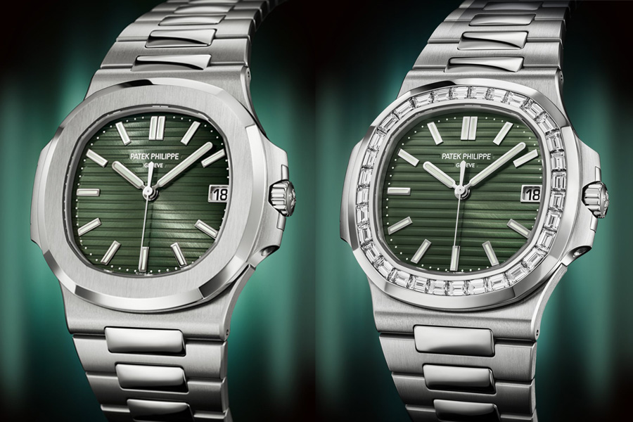 นาฬิกาใน Ref. 5711/1A-014 ตัวเรือนสตีลที่คุ้นเคยกันดีกับหน้าปัดสีใหม่ สีเขียวโอลีฟ ในราคาจำหน่ายในประเทศไทยที่ 1,071,800 บาท, นาฬิกาใน Ref. 5711/1300A-001 ตัวเรือนสตีลพร้อมหน้าปัดสีเขียวโอลีฟ และการประดับเพชรบาแก็ท 32 เม็ดบนขอบเบเซิล ในราคา 2,906,400 บาท