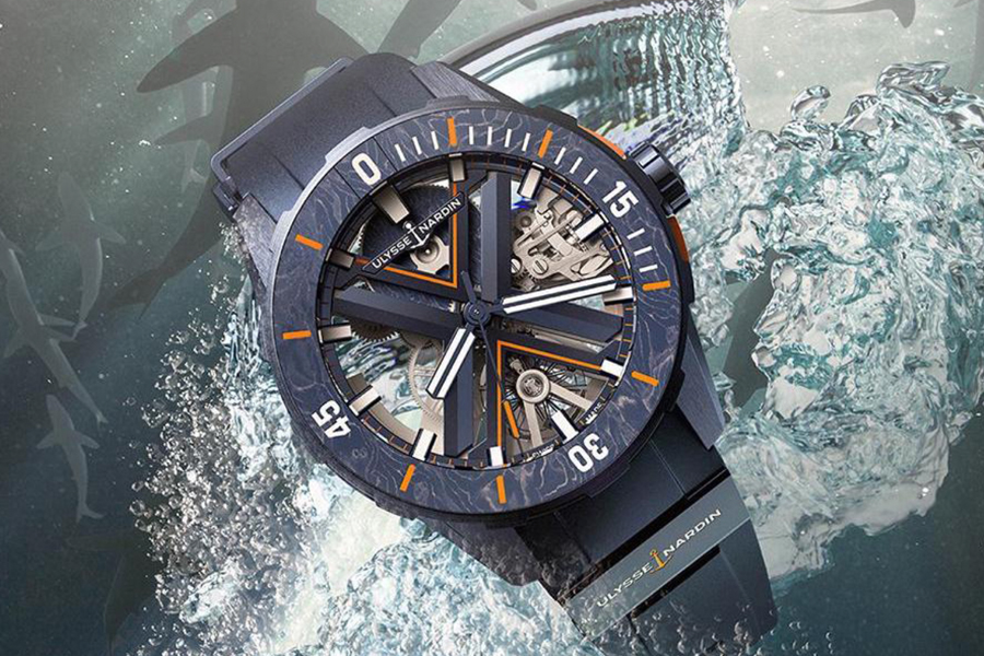 เริ่มต้นจากการใช้คาร์บอนไฟเบอร์ที่มีขนาดเส้นผ่าศูนย์กลางเพียง 7 ไมครอน มาผ่านแรงกดอัดและอุณหภูมิที่สูง โดยกระบวนการนี้ยังทำให้เส้นใยที่ได้ สร้างรูปเป็นลวดลายที่มีเอกลักษณ์เฉพาะหนึ่งเดียวของนาฬิกาแต่ละเรือน โดยนาฬิกา Diver X Skeleton จะมาพร้อมสายยางทั้งในโทนสีน้ำเงินโอเชียน (Ocean Blue) หรือสีส้มซูเปอร์ชาร์จ (Supercharged Orange) พร้อมทั้งองค์ประกอบการตกแต่งด้วยรูปสมอ ULYSSE NARDIN ในโทนสีส้ม พร้อมราคาจำหน่ายในประเทศสวิตเซอร์แลนด์ที่ 19,500 สวิสฟรังก์