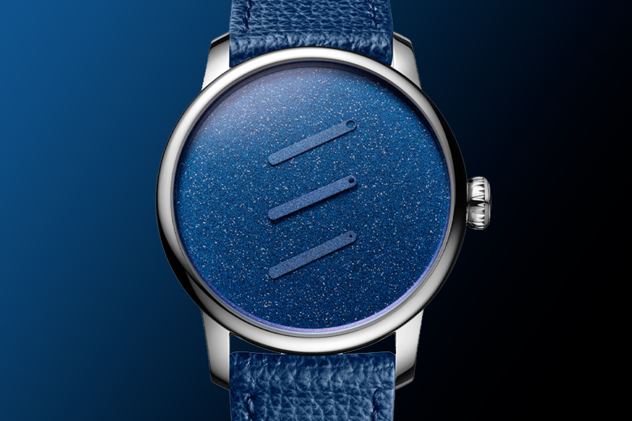 กับหน้าปัดที่ปราศจากโลโก้หรือข้อความ อันเป็นผลงานชิ้นเอกในโทนสีน้ำเงิน ที่เปลี่ยนจากสีน้ำเงินเป็นสีม่วงภายใต้ระดับแสงที่ได้รับ ซึ่งสะท้อนถึงภาพอันเป็นสัญลักษณ์ของ Mosset พร้อมเข็มในแบบกระบองซึ่งมีความยาว ความกว้าง และปลายโค้งมนในลักษณะเดียวกัน เพื่อช่วยเพิ่มองค์ประกอบอันน่าทึ่งของความสม่ำเสมอกัน โดยมีจุดประสงค์ในการกำหนดทิศทาง และยังคงแสดงค่าเวลาได้อย่างละเอียด ที่สามารถสังเกตได้ด้วรูตรงกลางบริเวณปลายสุดของเข็มแต่ละชุด