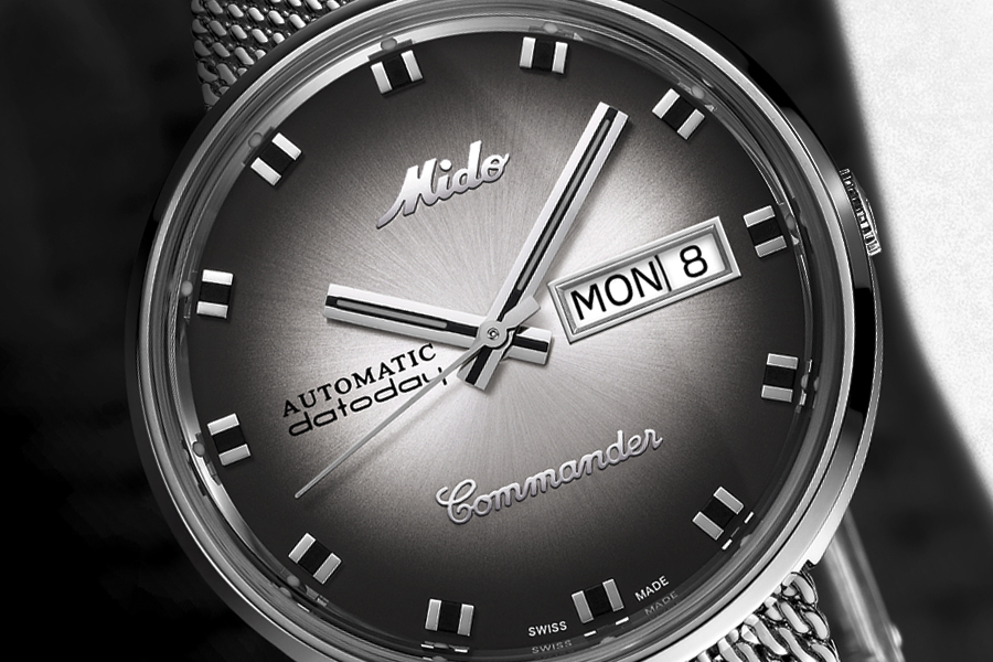 ในวาระพิเศษของการเฉลิมฉลองครบรอบ 100 ปีของการก่อตั้งแบรนด์ในปีนี้ ทาง Mido นำเสนอความพิเศษโดดเด่นของเรือนเวลาผ่านทางนาฬิการุ่นที่ถือว่าเป็นสัญลักษณ์ของแบรนด์และผ่านการพิสูจน์ถึงความคลาสสิคมาแล้วผ่านทางระยะเวลาแห่งการทำตลาดที่ยาวนานมากกว่าครึ่งศตวรรษ ทำให้ Commander Shade กลายเป็นนาฬิกาที่น่าตื่นตาตื่นใจด้วยหน้าปัดใหม่ที่ถูกจัดวางอยู่บนตัวเรือนทรงดั้งเดิมที่เปิดตัวออกสู่ตลาดครั้งแรกเมื่อปี 1959 ในตัวเรือนแบบชิ้นเดียว (Monocase) ทรงกลมพร้อมด้วยแนวทางการออกแบบที่ฉีกแนวและเปิดกว้างทางความคิด และจากการที่ได้รับอิทธิพลโดยตรงกับรุ่นที่เปิดตัวในปี 1979 หน้าปัดสีรมควันถูกขัดซาตินเป็นลายซันเรย์จึงถูกนำมาใช้อีกครั้ง และจากการเลือกใช้การตกแต่งในแบบทูโทนด้วยโทนสีดำ-เงินในทุกรายละเอียด โดยตัวสายเป็นแบบสายเหล็กถัก (Milanese) พร้อมกับขัดแต่งด้วยลายซาติน ช่วยทำให้สวมใส่สบายแนบไปกับข้อมือ กับเรือนเวลาที่มีรูปแบบโดดเด่นไม่เหมือนใคร และมีดีไซน์ที่อยู่เหนือกาลเวลา