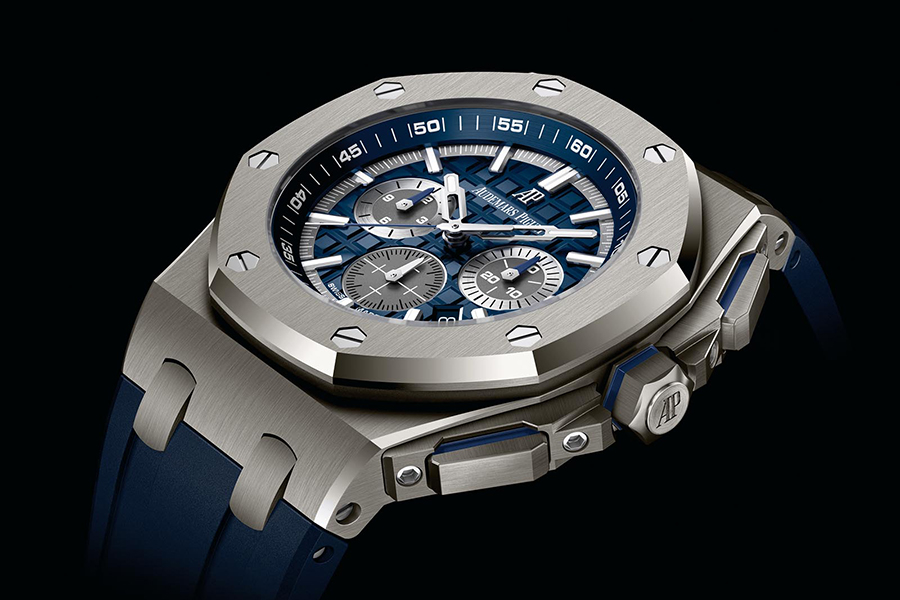 Royal Oak Offshore Chronograph 42 MM. ใน Ref. #26480TI.OO.A027CA.01 มีตัวเรือนขนาด 42 มิลลิเมตร หนา 12.8 มิลลิเมตร ผลิตจากไทเทเนียม กระจกแซฟไฟร์กันแสงสะท้อน ขอบเบเซิลไทเทเนียม ปุ่มกดทั้งสองแบบแบนผลิตจากไทเทเนียม พร้อมแท่นติดสกรูว์ประกบติดตัวเรือน เม็ดมะยมแบบขันเกลียวแน่น หน้าปัดสีน้ำเงินลายเมก้าทาปิสเซอรรี พร้อมวงจับเวลาทั้งสองและวงวินาทีสีเทา มาร์กเกอร์และเข็มผลิตจากไวท์โกลด์พร้อมเคลือบสารเรืองแสง สายยางสีน้ำเงินและหัวเข็มขัดไทเทเนียม พร้อมสายยางสีขาวอีกหนึ่งชุดเพื่อใส่สลับเปลี่ยน กันน้ำ 100 เมตร