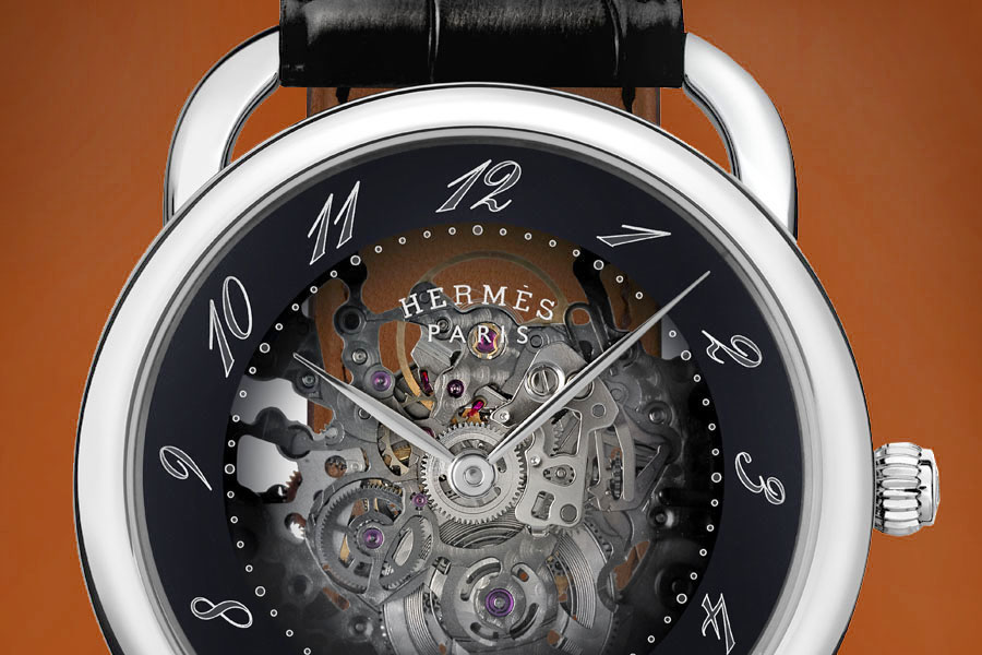 ภายใต้พื้นหน้าปัดคริสตัลแซฟไฟร์สีควันบุหรี่ โอบล้อมด้วยวงแหวนที่ประดับด้วยตัวเลขอารบิคสำหรับแสดงเวลา นาฬิกา HERMÈS Arceau Squelette ที่ผ่านการออกแบบโดย Henri d’Origny) ตั้งแต่ปี 1987 นับเป็นตัวอย่างที่ดีเยี่ยมของความคลาสสิกที่เข้มงวด ด้วยลักษณะเฉพาะกับความเรียบง่าย หากแต่เต็มไปด้วยรายละเอียดอันน่าพิศมัย