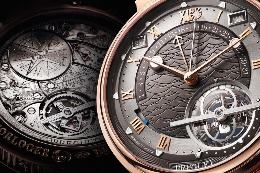 โดยมีการแกะสลักลายคลื่น บนหน้าปัดที่ผลิตจากทองคำด้วยมือ จากเครื่องมือพิเศษเฉพาะของ BREGUET ที่มีความสามารถในการช่วยให้ช่าง สามารถแกะสลักลวดต่างๆ ได้อย่างประณีตบรรจง โดยมองเห็นได้ผ่านกระจกแซฟไฟร์ทั้งด้านหน้า และด้านหลังสำหรับกลไกที่มีความสลับซับซ้อนสูง