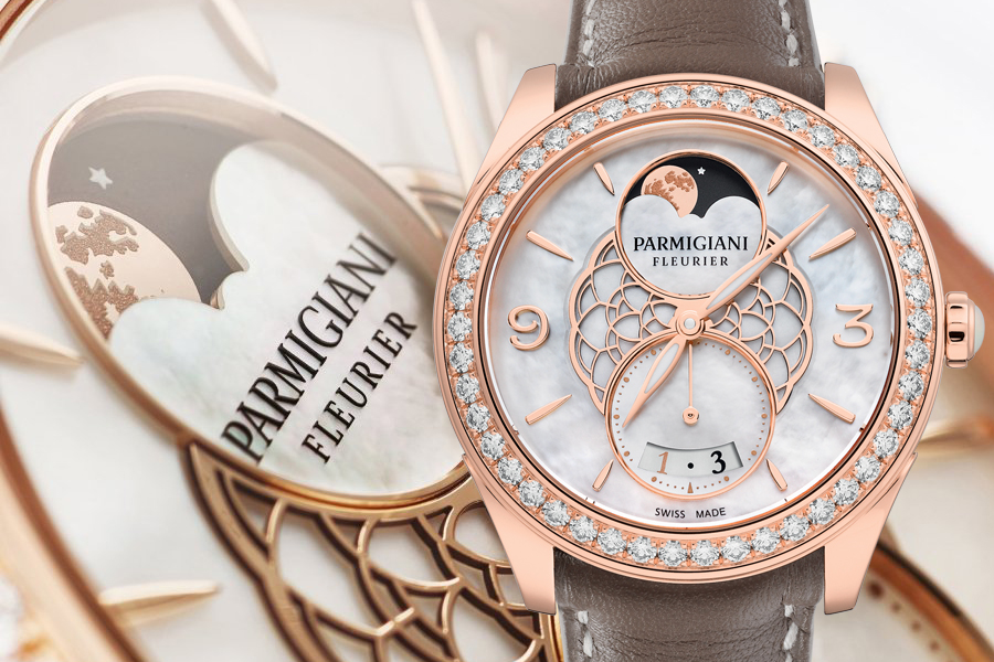 ตัวอย่างที่ดีที่เห็นได้ชัด คือนาฬิกา PARMIGIANI Fleurier รุ่น Tonda Selene รุ่นใหม่ล่าสุด ที่เป็นนาฬิกาที่เต็มไปด้วยความงดงาม กับลวดลายวัสดุโรสโกลด์บนหน้าปัด พร้อมพื้นมุกสีขาวผนวกกับชุดมูนเฟสและชุดแสดงวันที่ ที่รวมกันทำให้นาฬิกาเรือนนี้ มีความงดงามอย่างมีสไตล์บนข้อมือของคุณสุภาพสตรีทุกคน