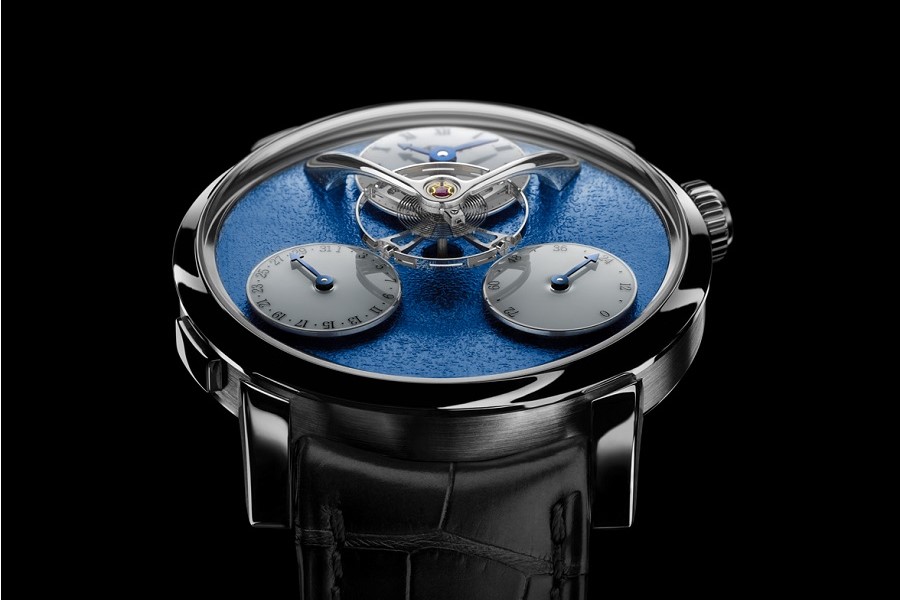 LMSE (Legacy Machine Split Escapement) BLUE เบสเพลทเคลือบสีน้ำเงิน กลไกเคลือบโรเดียม ให้อารมณ์งามสง่าสไตล์คลาสสิก สวมคู่กับสายหนังจระเข้สีดำ