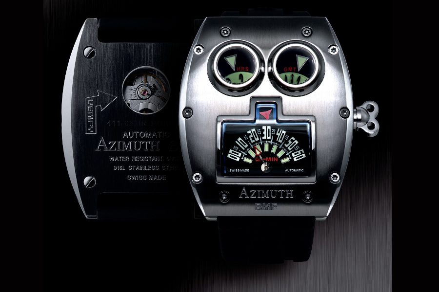 ที่ Azimuth ไม่มีการจำกัดขอบเขตในการสร้างสรรค์ของเหล่านักออกแบบของพวกเขา ดีไซเนอร์ทุกคนมีอิสระที่จะฝัน และนำความฝันนั้นมารังสรรค์ให้เป็นความจริงขึ้นมา แต่สิ่งที่ต้องมีก็คือความล้ำเลิศโดดเด่น และการเป็นเครื่องจักรกลชั้นยอด นาฬิกา Azimuth ทุกแบบล้วนถูกโมดิฟายด์และประกอบขึ้นภายในโรงงานของตนเองซึ่งตั้งอยู่ที่ เบียล/เบียน ประเทศสวิตเซอร์แลนด์ โมดูลกลไกอันซับซ้อนเหล่านี้จะมอบความประทับใจในการแสดงเวลาด้วยรูปแบบที่แตกต่างจากนาฬิกาทั่วไป