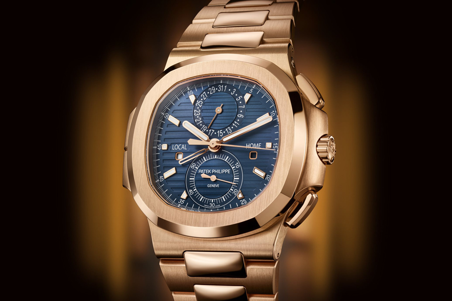 นาฬิกา PATEK PHILIPPE ใน Ref. 5990/1 จากคอลเลคชั่น Nautilus มีการเปิดตัวเป็นครั้งแรกในเวอร์ชั่น สตีลในปี 2014 พร้อมหน้าปัดที่มีการไล่เฉดของสีดำจากด้านในหน้าปัดสู่รอบนอก และยังผสมผสานการทำงานในสามฟังก์ชั่นอันสลับซับซ้อน แต่สามารถควบคุมการทำงานได้อย่างสะดวกสบาย ทั้งฟังก์ชั่นฟลายแบ็คโครโนกราฟ ฟังก์ชั่นเทรเวลไทม์ และการแสดงวันที่ในแบบอนาลอค ณ ตำแหน่ง 12 นาฬิกา ที่สอดคล้องกับการแสดงเวลาตามท้องถิ่น(Local Time) ซึ่งวันนี้ PATEK PHILIPPE ได้เสนอในเวอร์ชั่นวัสดุโรสโกลด์ ที่มีสีสันตัดกันอย่างงดงาม กับหน้าปัดสีน้ำเงินกระจายแสง (Blue Sunburst) ที่ผ่านการตกแต่งลายนูนแนวนอน เช่นเดียวกับมาร์กเกอร์แสดงเวลาชั่วโมง และเข็มที่ผลิตจากโรสโกลด์เคลือบสารเรืองแสง