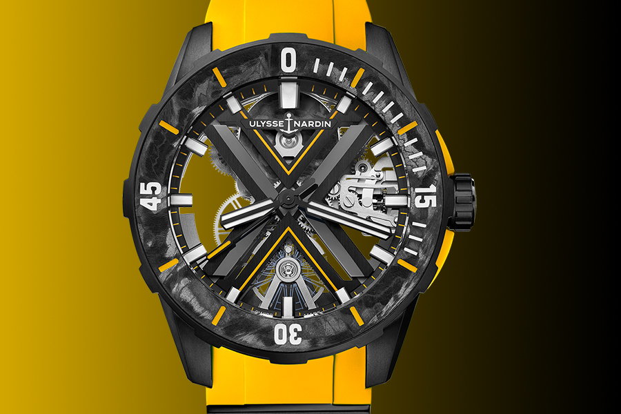 หลังจากที่นาฬิการุ่น Diver X Skeleton แบบโทนสีน้ำเงินซึ่งจำหน่ายหมด ในเวลาอันรวดเร็วหลังการเปิดตัวในช่วงปี 2021 ULYSSE NARDIN จึงมีการเปิดตัวนาฬิการุ่นนี้อีกครั้ง ในแบบการผลิตจำนวนจำกัดเพียง 175 เรือนพร้อมเสน่ห์แห่งสีดำคาร์โบเนียม (Carbonium®) และตัวเลือกอันโดดเด่นของสายยางสีเหลืองสดใส รวมไปถึงสายอาร์-แสตรป (R-Strap) สีดำที่ผลิตขึ้นจากอวนจับปลาที่ผ่านกระบวนการอัพไซเคิล