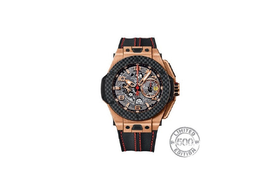 Big Bang Ferrari Red Magic Carbon จะมาในตัวเรือนวัสดุคาร์บอนไฟเบอร์ที่มีโครงสร้างแบบมัลติเลเยอร์ประกอบด้วยแผ่นคาร์บอนไฟเบอร์หลายแผ่นซึ่ง HUBLOT พัฒนาและผลิตขึ้นเอง ผนึกด้วยกระจกแซฟไฟร์สีแดงเคลือบสารป้องกันแสงสะท้อนทั้งสองด้าน ซึ่งสีที่เห็นนั้นมิใช่การเคลือบสีแต่เป็นการเติมสารประกอบเคมีลงในขั้นตอนการทำกระจกเลยซึ่งจะทำให้สีมีความคงทนไม่เปลี่ยนแปลง มีสาย 2 สีให้เลือกเปลี่ยนใส่ คือ สีดำด้ายแดงกับสีแดงด้ายดำ ซึ่งเป็นการนำหนัง Schedoni เช่นเดียวกับที่เฟอร์รารี่ใช้ตกแต่งภายในห้องโดยสาร มาเย็บประกบบนสายยางสีดำ ผลิตจำนวนจำกัด 1,000 เรือน ส่วน Big Bang Ferrari King Gold Carbon จะมาในตัวเรือนคิงโกลด์ 18k ผลิตจำนวน 500 เรือน และ Big Bang Ferrari Ceramic จะมาในตัวเรือนเซรามิกดำ ผลิตจำนวน 1,000 เรือน