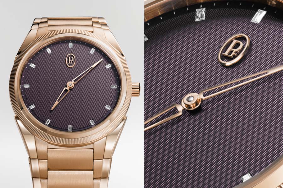 และโดดเด่นมากที่สุดกับหน้าปัด ที่ผลิตขึ้นในรูปแบบแฮนด์กิโยเช่ ที่หาได้ยากในแบรนด์นาฬิการะดับทั่วไป พร้อมการประดับด้วยเพชรบาแก็ตต์แทนมาร์กเกอร์แสดงค่าเวลา กับเข็มแสดงค่าเวลานาทีและชั่วโมงรูปทรงเดลต้า ใช้งานเข้าคู่กันกับสายที่ผลิตขึ้นจากวัสดุโรสโกลด์ ในรูปแบบสายสร้อยข้อมือในสไตล์ของนาฬิกาคอลเลคชั่น Tonda PF ที่บ่งบอกได้ถึงความหรูหรา ความมีคุณค่า และความงดงาม ที่ผู้คนระดับโลกให้การยอมรับกับนาฬิกาในคอลเลคชั่นนี้
